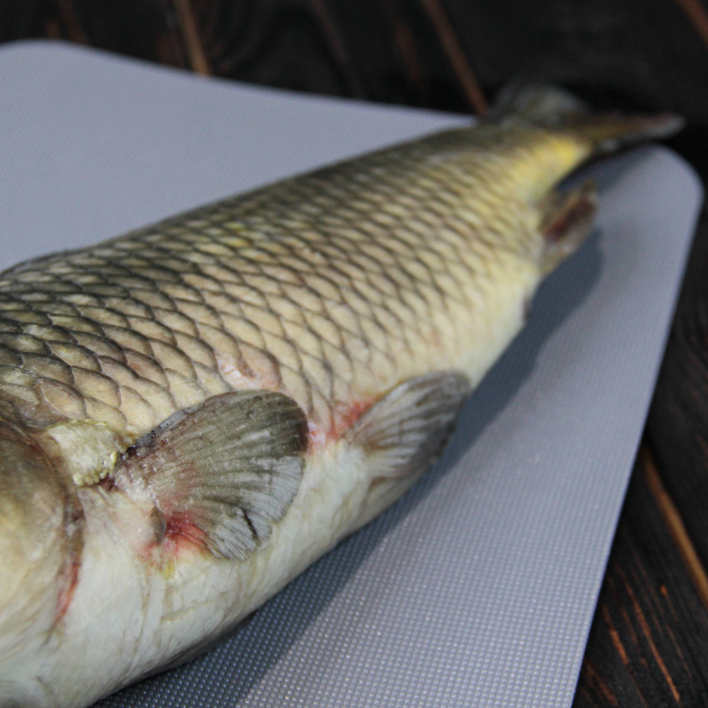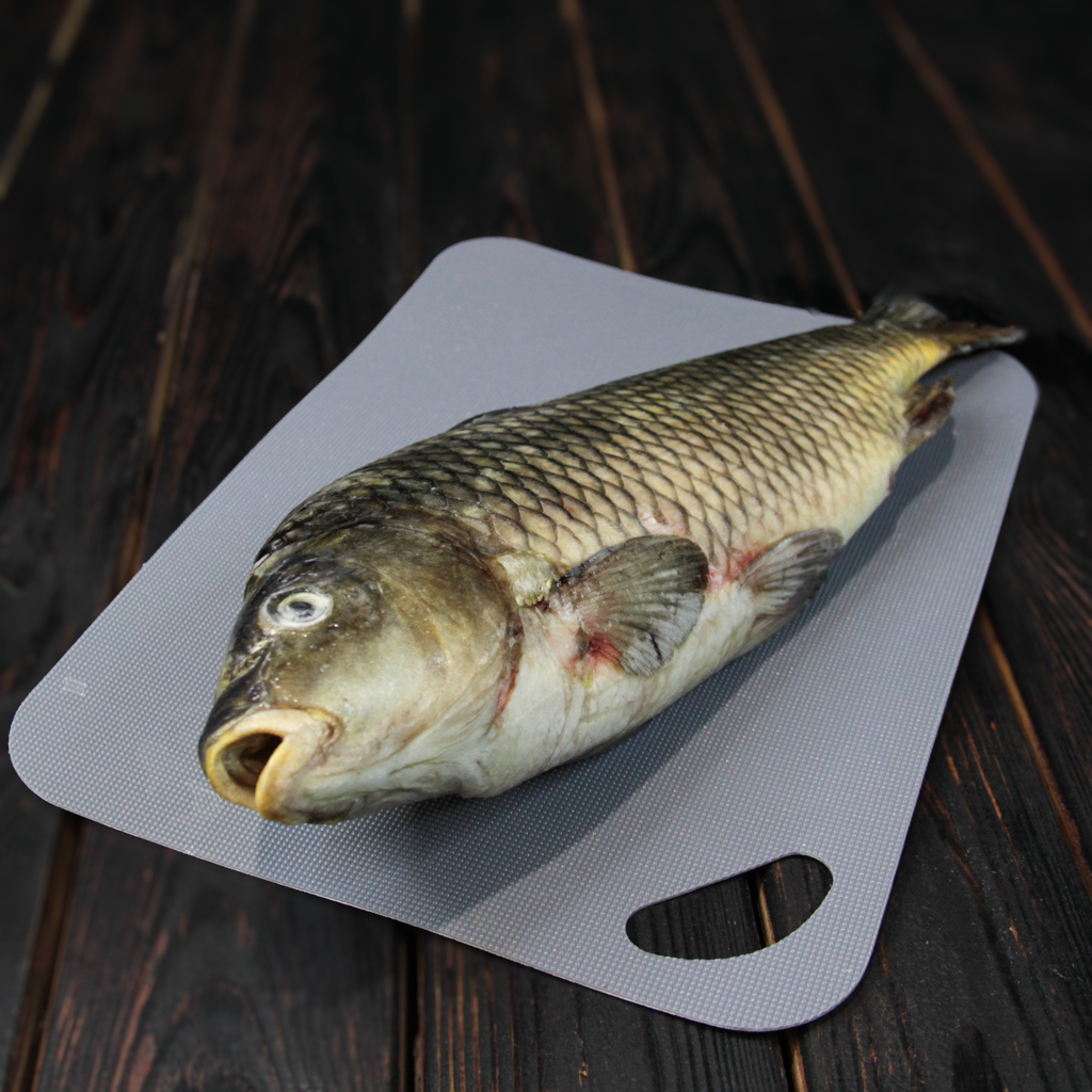 Сазан — это ценная пресноводная рыба семейства карповых, известная своим сочным, слегка сладковатым мясом и умеренным количеством костей. Наш сазан выловлен в экологически чистых водоемах и сразу после поступления на производство подвергнут шоковой заморозке при температуре ниже -35°C. Это позволяет сохранить все полезные свойства, свежий вкус и плотную текстуру мяса, как у только что пойманной рыбы.