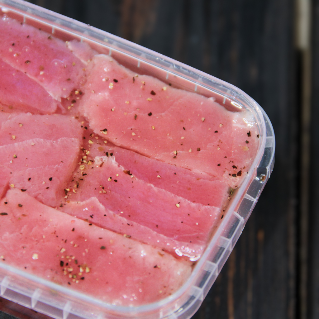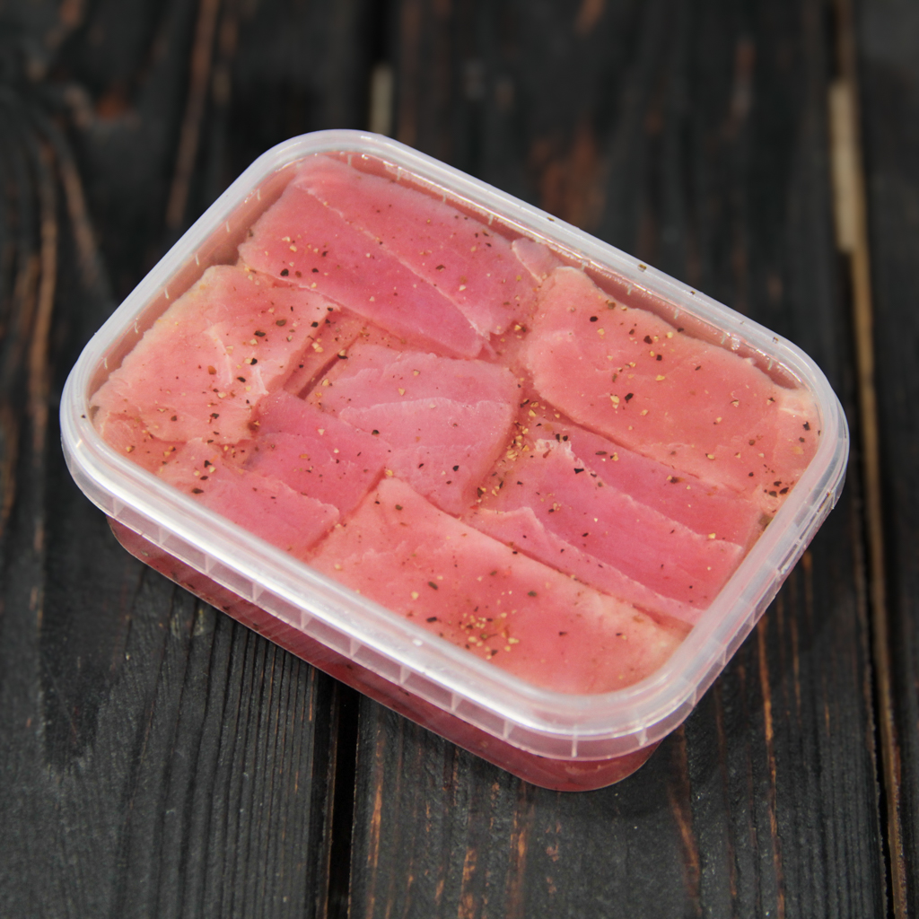 Эксклюзивное прочтение благородного тунца от нашего собственного производства: нежное филе, приготовленное по технологии «семужного» посола с добавлением сбалансированного микса пряных специй. Пикантная нотка деликатно подчеркивает насыщенный мясной вкус рыбы, сохраняя её фирменную тающую текстуру и сочность. Удобный формат 300 г станет идеальной основой для авторских закусок, эффектных рыбных тарелок или изысканным дополнением к бокалу белого вина.